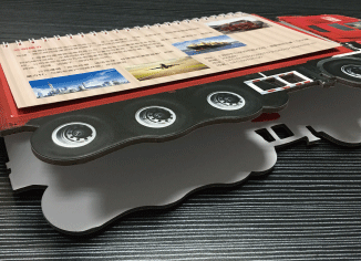 底板用2.5mm灰板對裱157克銅版紙,內(nèi)頁用250克銅版紙印刷,白色的鐵圈裝訂而成。