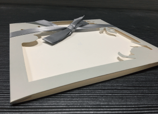 外加鏤空設計的封套,厚厚的裝載著祝福,灰色絲帶的點綴也是一點兩點!
