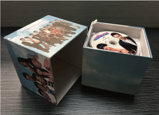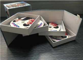 光盤盒由2.5mm灰板與珠光紙對裱而成,珠光紙的閃亮效果襯托圖片更耀眼。