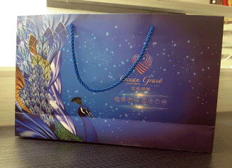 3)手提袋的設(shè)計(jì)非常精美,300克銅版紙印刷,加上啞膜,精致的藍(lán)色織帶與整個(gè)袋子交相呼應(yīng)!